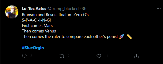 #BlueOrgin, that’s funny! (The company is #BlueOrigin if that was over your head)