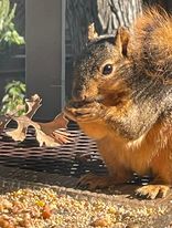 The regular high fat feeding has made all the squirrels big and healthy with beautifully shiny coats. You can laugh, but they appreciate me. One old guy will come up to the glass door and look for me.