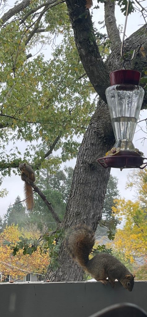 It’s mating season now. The tree dogs in my yard are appreciating the choice selection of nuts they have been getting. TG for Costco large bags. In case you wondered, they prefer walnuts first, then pecans, sunflower seeds, and peanuts. Cashews and pistachios not so much.