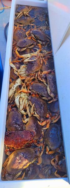 There are 200 crabs in that photo on the right – all dungeness – with a single red rock crab on top (the red rock crab is also known as the pearl of the Pacific).