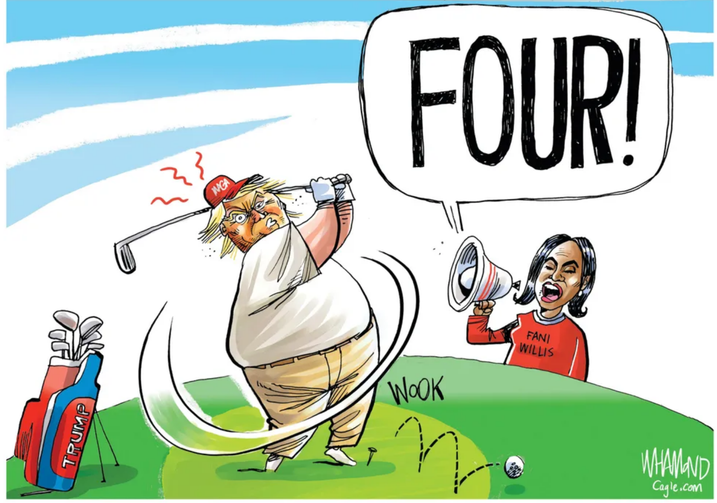 FOUR INDICTMENTS!! tRump and 18 cronies charged with 14 counts in Georgia for election interference. The RICO charge makes this the most serious of his four indictments. You can read the indictment, here.