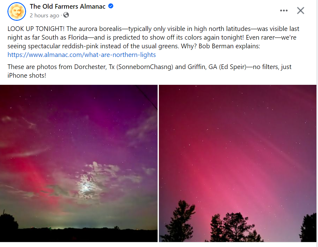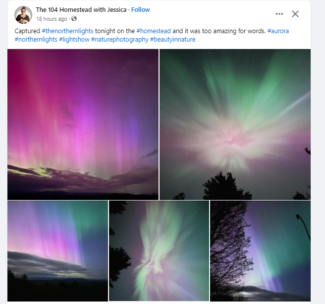 Did you get a glimpse last night? Lots of people across the US did. For most of the US its a rare event. I wasn’t one of them to see it. I went out twice to check the sky but it looked like a typical night. This morning, I learned that you are supposed to put your camera on night mode to catch the colors in the sky. I’m going to try again tonight. Wish me luck!