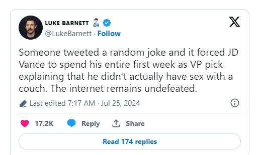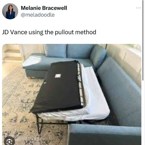 “Because it’s simply not true, which is why we have to refuse to use the hashtag #CushionPushinJDVance.”