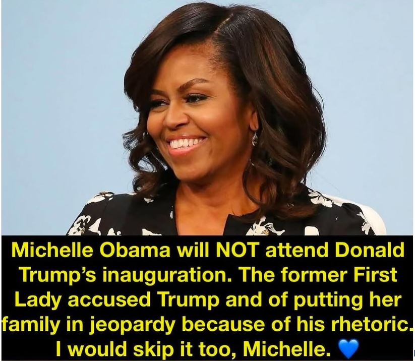 Madame Obama is not expected to attend tRump’s inauguration. I support her.