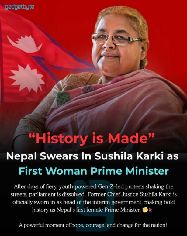 A WOMAN was sworn in, Sushila Karki. The first female Prime Minister in Nepal’s history.